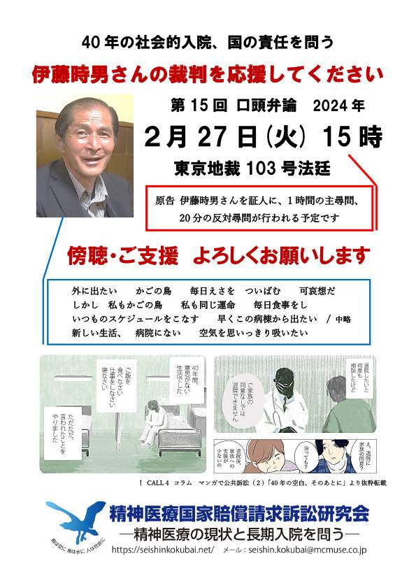 第15回口頭弁論用フライヤー 2023年12月11日 最終更新日時 : 2024年1月16日 manager ダウンロード Download is available until [expire_date] バージョン ダウンロード 76 ファイルサイズ 496.28 KB ファイル数 1 投稿日 2023年12月11日 最終更新日時 2024年1月16日 第15回口頭弁論用フライヤー 第15回口頭弁論用チラシを作っていただきました。 相談電話203-6820-1198