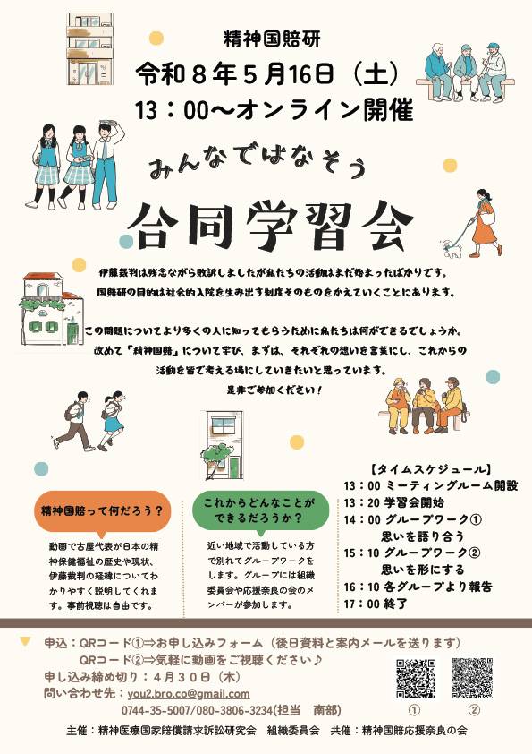 主催:精神医療国家賠償請求訴訟研究会 組織委員会 共催:精神国賠応援奈良の会